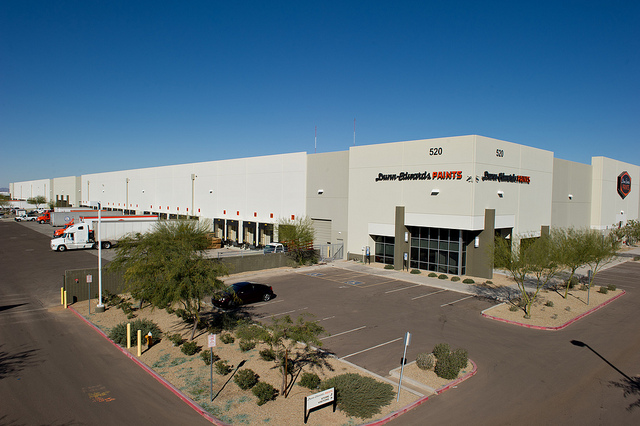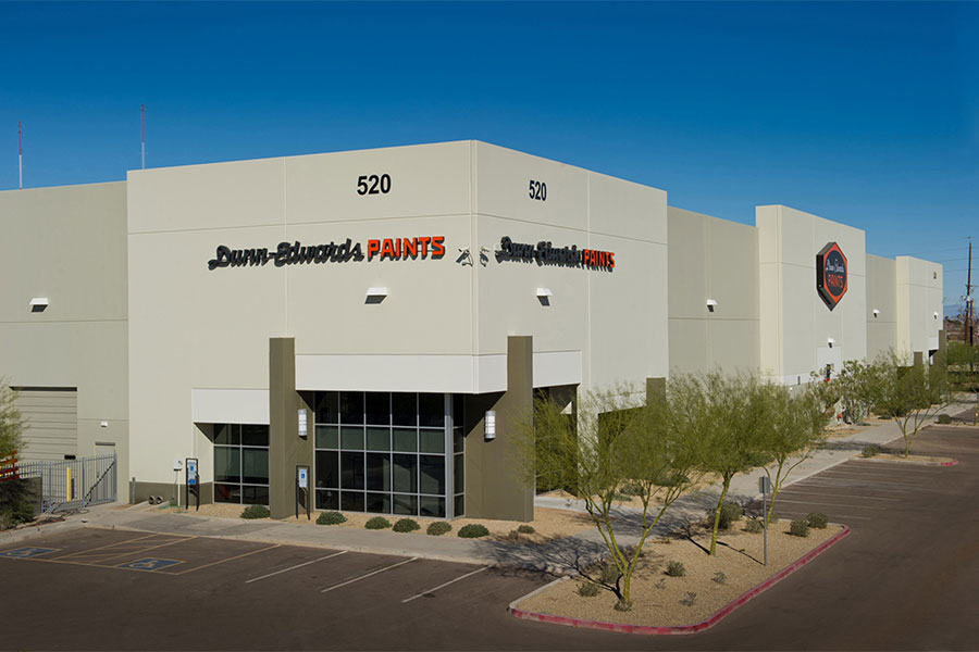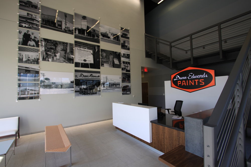 Dunn-Edwards Manufacturing & Distribution Facility with Retail Store began with the purchase of a giant warehouse in 2009 for $12 million. Then they spent $21 million on additions and renovations. Dunn-Edwards consolidated its manufacturing and distribution operations and opened the first LEED Gold manufacturing facility in the world. Energy calculations on the new plant show a 50% reduction over its two existing operations. It was custom designed to be the greenest and most efficient in the coatings industry.